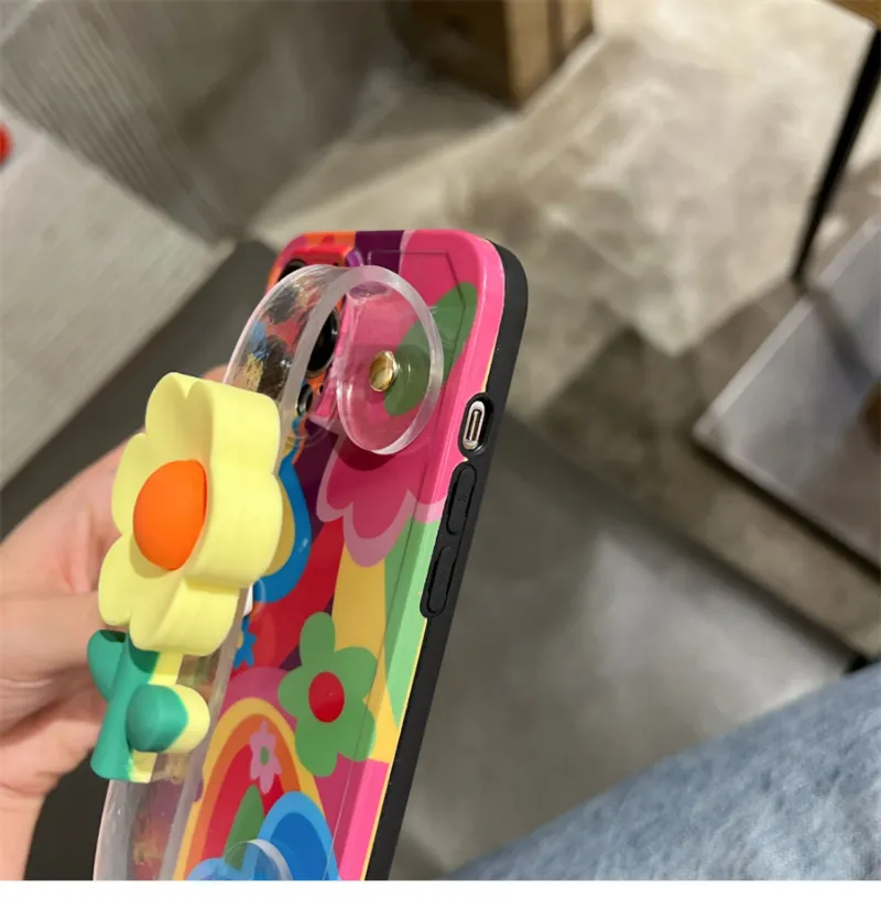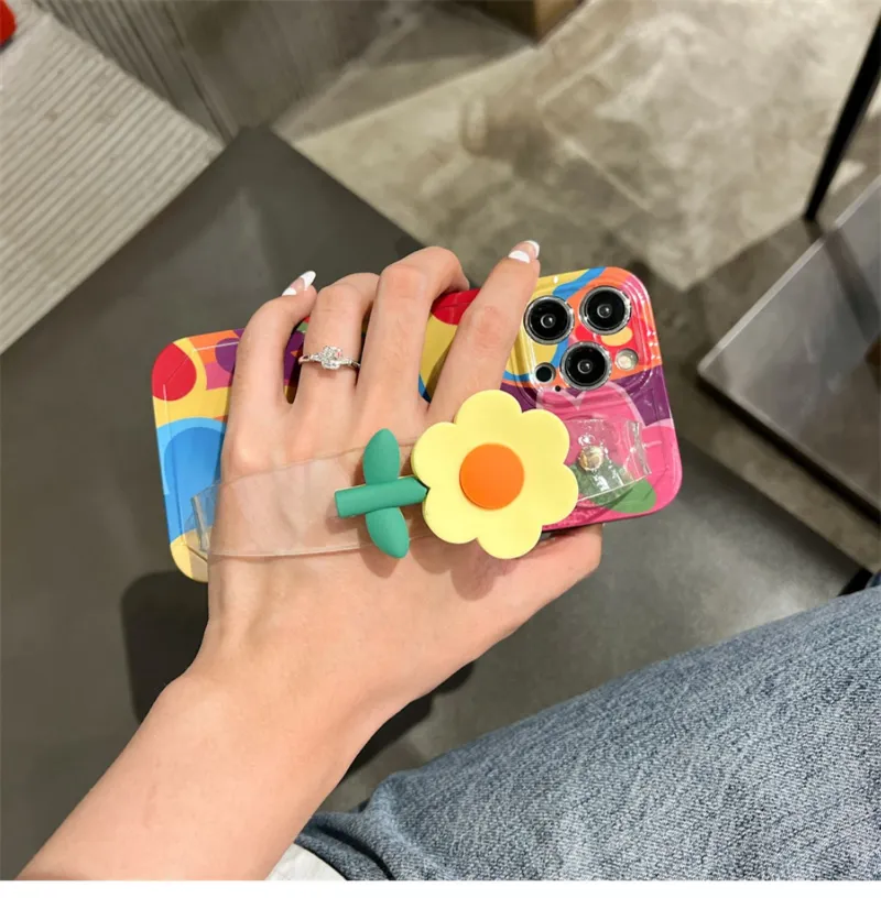Flower With Lanyard Neck Strap  Silicone Case For iPhone