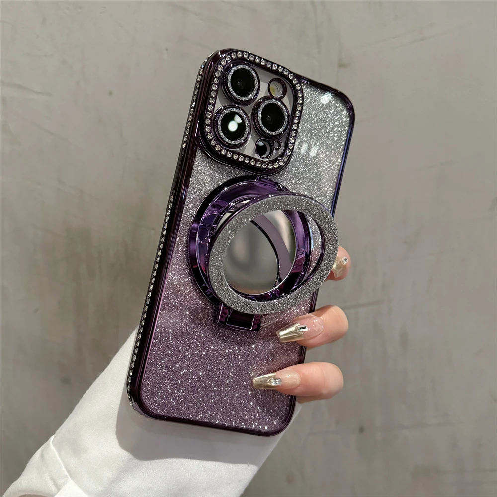 Luxury electroplated diamond mirror holder phone case for iPhone