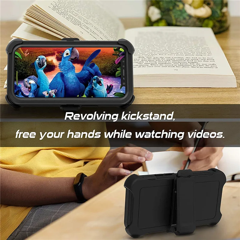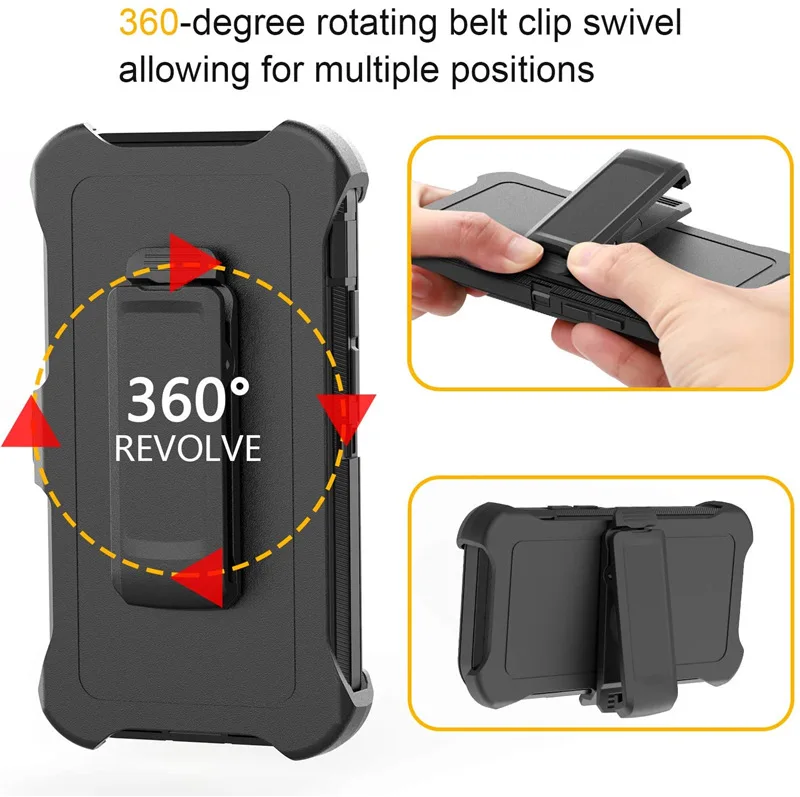 A 360 degree swivel belt clip can use to clip your phone on the belt for easy to work, belt clip also acts as a stand, a perfect case widely used for outdoor activities and travelling, Enjoy a convenient life style.
