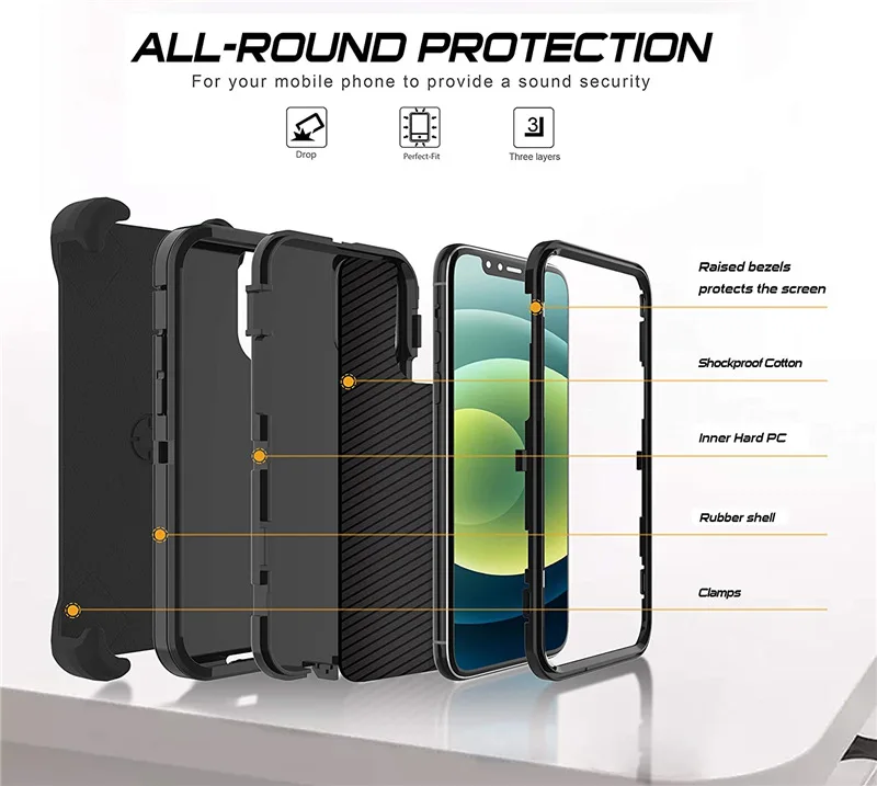 Made of environmentally friendly durable material PC & TPU, solid inner shell and soft outer cover.