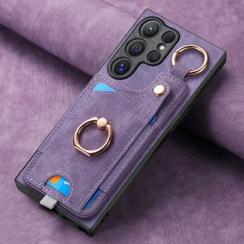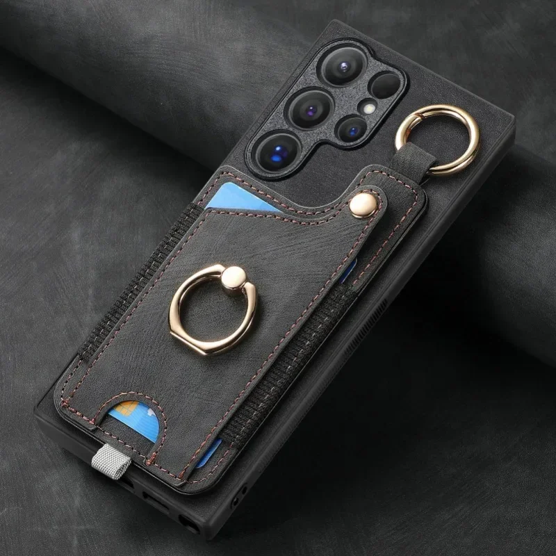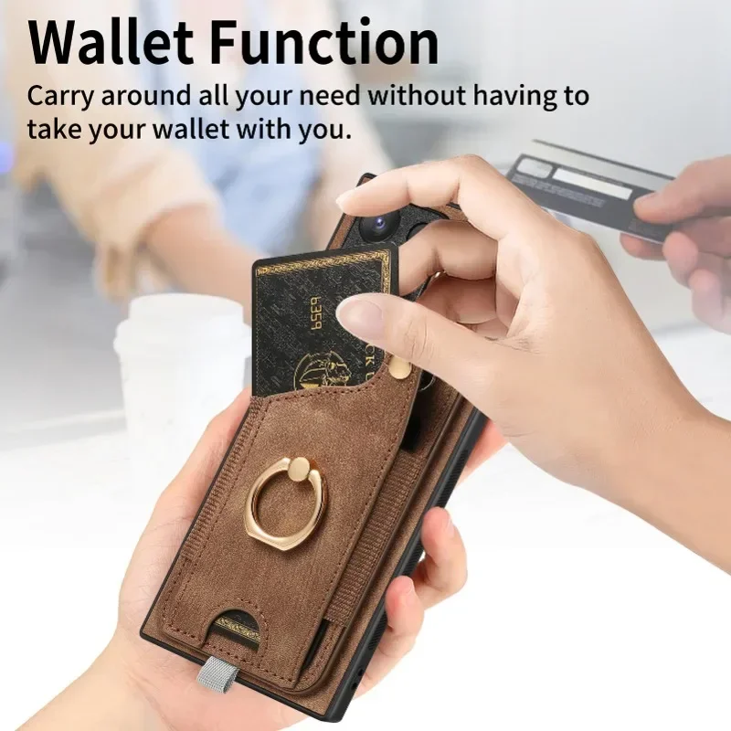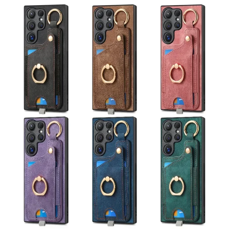 Leather magnetic wallet card insert phone case for Samsung